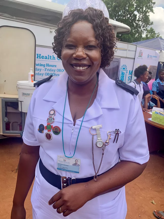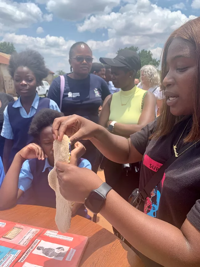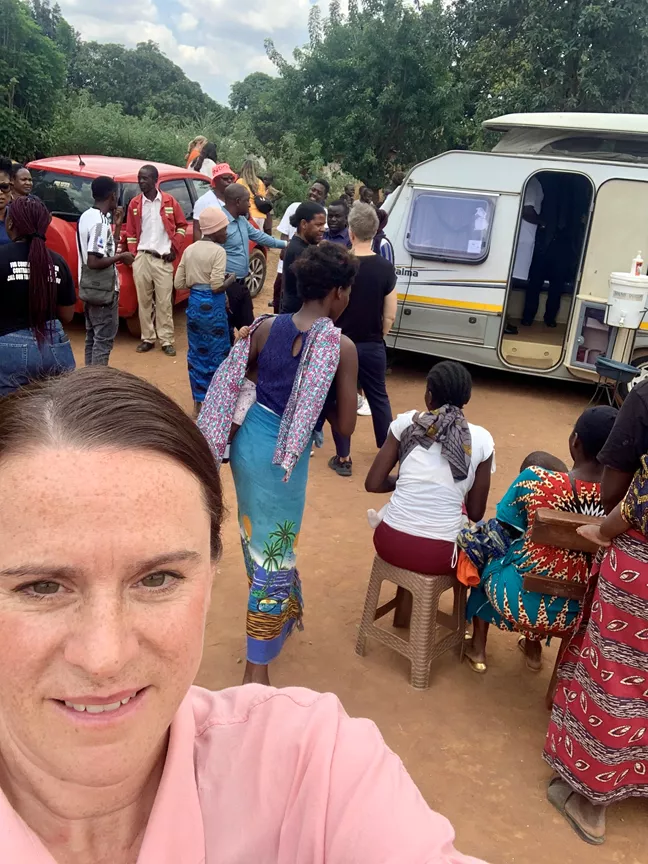 En bit utanför staden har Marie Stopes en tillfällig mottagning vid en marknad för att nå ut till de mest utsatta grupperna. Modellen man jobbar efter kallas “Människan i centrum”. Ungdomar samlas just denna dag vid ett bord där personal demonstrerar mensskydd som man kan återanvända. I ett tält skriker någon högt av ett nålstick för ett hiv-test. Mammor med små barn väntar tålmodigt i en lång kö vid ett annat tält. En husvagn fungerar som ungdomsmottagning.