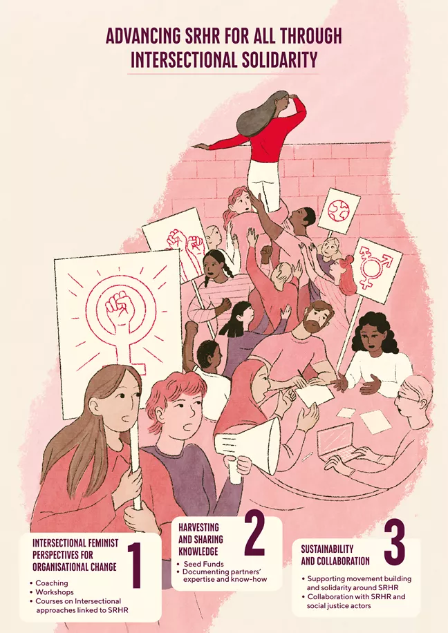 In a context of shrinking civic space, where work with gender equality, SRHR, anti-racism, diversity and inclusion is under threat, RFSU sees it as even more important to recognise the value of adopting intersectional perspectives as a way of promoting movement building and solidarity around SRHR.