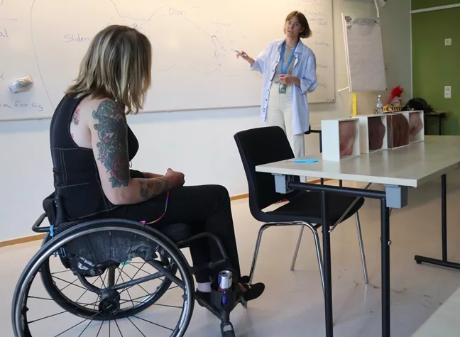 – Skolungdomarna är så intresserade av sex så dom tänker nog inte ens på att jag sitter i stol. Det viktiga är pratet om sex. Men det känns ändå bra att kunna visa stolen i det här sammanhanget. Att synliggöra att en person som jag också har en sexualitet.