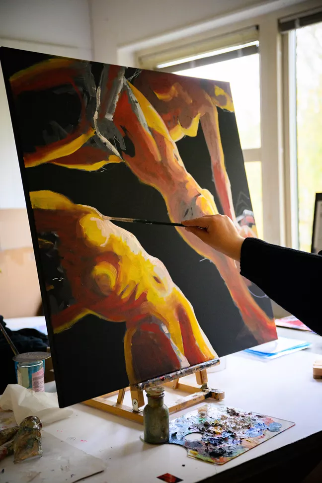 – När jag målar är det en av få gånger då pulsen sänks. Jag får tillgång till mitt undermedvetna och tänker i andra mer harmoniska banor. När jag målar existerar jag bara. Annars måste jag alltid hålla mig sysselsatt.