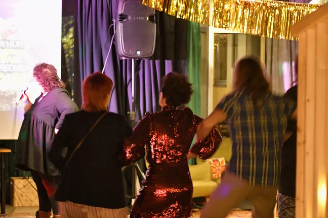 Efter panelsamtalen fortsätter festen med bland annat fiskdamm och karaoke. En av dem som minglar runt är Emeli från Resursteam Heder, en organisation som ger stöd och råd till personer från 13 år, bosatta i Malmö som är utsatta för hedersrelaterat våld och förtryck. Hon har varit med i en referensgrupp under arbetet med filmen för att berätta vilka behov hon ser hos målgruppen.