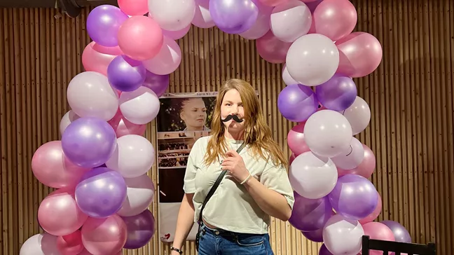 Även Anna Lilja, projektledare hos RFSU Malmös, hänger kvar på festen. Hon berättar att projektet Sex för alla - sexualupplysning personer med autism och IF -nu funnits i tio års tid och att Joni är ett sätt att fördjupa arbetet.