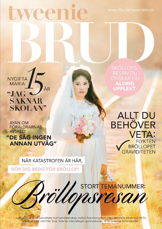 Varannan sekund blir ett barn bortgift. När ett samhälle drabbas av en humanitär kris ökar antalet barnäktenskap. 2016 lanserade RFSU och Svenska kyrkans internationella arbete löpsedeln Tweeniebrud. Med tema Bröllopsresan.