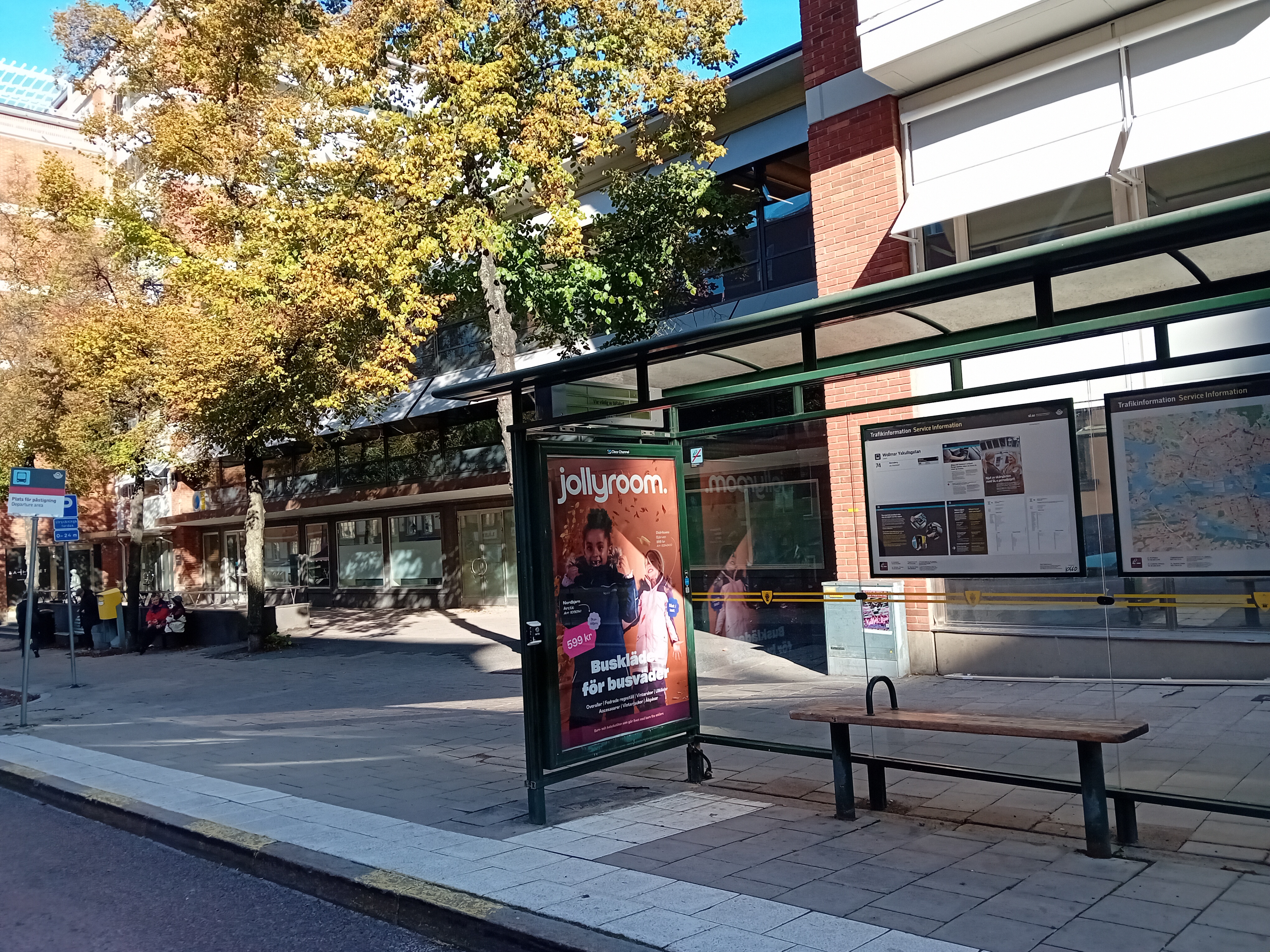 Busshållsplatsen ligger på samma gata som Cafékvällarna.